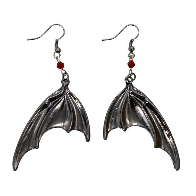 Fly into spooky season when you wear these adorable bat wing earrings! These black earrings resemble bat wings. Wings are attached to earring wires with a small red bead. Wear one or both! Perfect for goth girls, spooky girls, vampires and witches. Wear them all of October to keep yourself in the spooky mood.