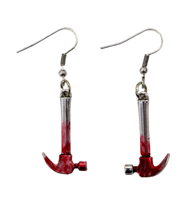 Halloween is a bloody good time! Let us help you celebrate the spooky season with these scary hammer earrings. These miniature hammers are 1 inch long and the claw ends are a bloody red! The earring hooks are stainless steel. Wear them with your Halloween costume or just for fun. Very lightweight metal earrings. One size fits all.