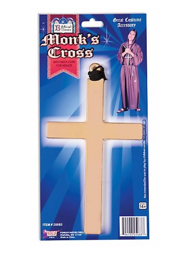 Take them to church when you add this fun plastic gold cross. This cross hangs easily around your neck on a sturdy black cord. The perfect accessory to complete your priest, nun or monk costume. Add it to your vampire hunting kit or use it on stage for Friar Tuck. This light weight cross is 8 1/4 inches long and 5 1/4 inches wide. One size fits most.