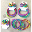 There is cool, then there is 1980's cool!  We had big hair, neon colors and everything jelly!  Jelly shoes in neon colors were very popular, but the jelly bracelets?  We all had dozens of them, in every color!  Now you can relive the glory of the 1980's with this fun multi color jelly rubber bracelet and ring sets.  You will receive 12 bracelets and 10 rings in each set.  Price is for 1 set.  One size fits most women and teens.  Fun for everyday wear or to compliment your 1980's look.