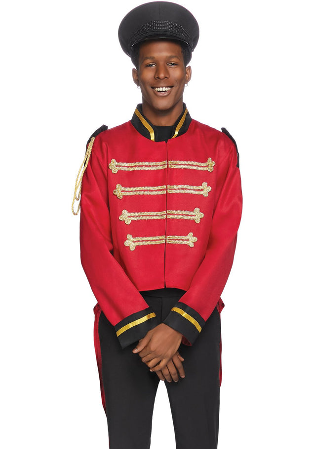 Command the troops or star in the center ring in this terrific military style jacket with long tails. This fine jacket has brocade trim details down the front. Jackets have epaulettes on the shoulder and rope trim. Available in red or grey with high standing collars. Jackets have a hook and eye closures. Pair it with a top hat for a circus ringmaster, a military hat for an officer, or a pill box hat for a steward, sold separately. Costume runs true to size.