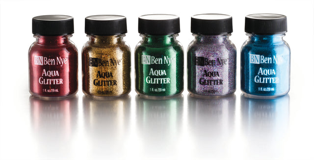 Tired of wanting to wear glitter, but frustrated with the way it flakes and falls off shortly after application? Tired of glitter trails following you whenever you apply? Then invest in Aqua Glitter! This fine cosmetic glitter is suspended in a clear, liquid "glue" that drys quickly for a flake free finish. Available in many different colors for multiple different looks! Use Aqua Glitter to add pizzazz to your face and body painting. Make your date night look extra dramatic. Use caution when applying around eyes.