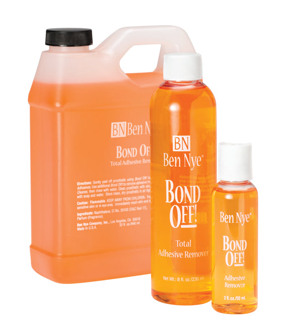 Skip the pain when you have to remove a fake mustache or prosthetic.   Bring on the Bond Off!.  Bond Off quickly and thoroughly dissolves Spirit Gum, prosthetic adhesive and other skin safe adhesives.  Removes adhesives with no pain or fuss.   Apply to a q-tip and gently rub on glue.  Wipe off excess and wash skin with soap and water.