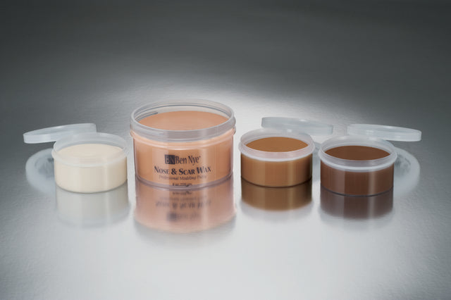 Need to create a variety of wounds, noses and chins?  Look for a wax that is firm yet easy to manipulate?  Nose and Scar Wax is perfect for so many different fx.  Make noses bigger or broken, cuts, gouges or pointy chins.  Available in several "flesh tones", wax can be applied to skin with Spirit Gum.  Smooth it out and texture with a stipple sponge.  Seal with Liquid Latex and color with creme foundation, fx wheels or different bloods for wounds.  Latex makes it easy to peel off.  Remove residue with spirit gum remover.  Wash with soap and water.