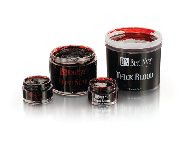 A must have for the budding makeup artist in your life! Thick Blood is an excellent bright blood gel ( arterial!). Great for many stand alone makeup effects like scraped knuckles, road rash, fresh cuts and more. For road rash or scrapes, apply with a stipple sponge. Dip sponge in blood gel and drag across the skin where you want the wound to appear. Allow to dry. Makes a good cut or wound filler. Not intended for use in the mouth. Available in assorted sizes to meet all your needs.