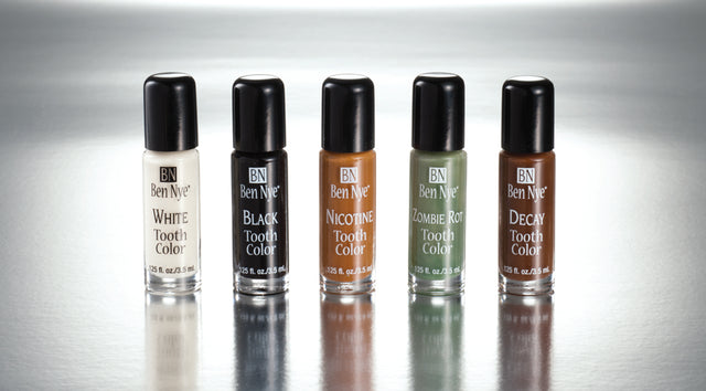 Is your hockey player or boxer costume not realistic enough? Is your zombie smile not grizzly enough? Try some tooth color to make your makeup more realistic. Paint the tooth color on your clean dry teeth using the brush that is included in the bottle. Allow to dry thoroughly before closing your mouth. Apply several layers for best effect. Tooth color is long lasting and will last through drinking and light eating. Remove with a cotton swab and alcohol or brush off with toothpaste.