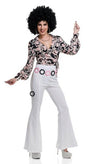 Disco might be considered dead by some lame people, but we believe disco now and disco forever! We believe in disco pants, disco shirts and big gold necklaces. We love these disco pants. These pants have high waists and also have flared bottoms and would go great with any kind of disco top or shirt. Get your old platform shoes out of the closet and start boogieing down! These are great on their own but pair well with disco shirts, platforms and afros, all sold separately.