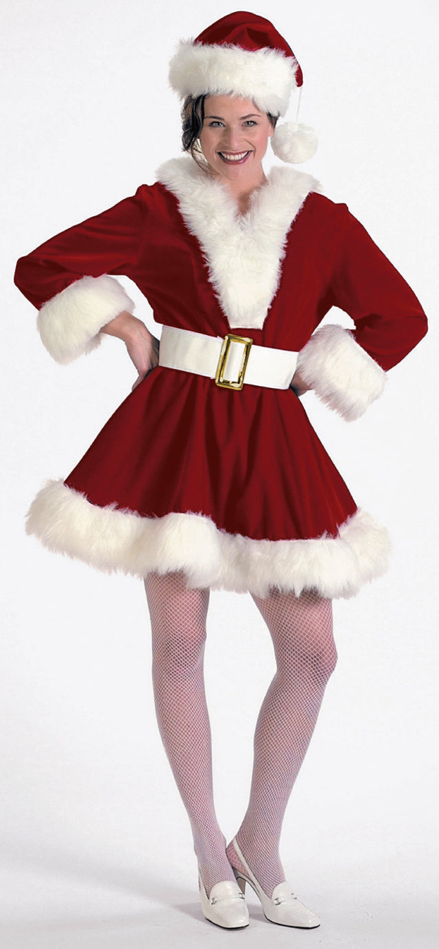 Burgundy Velvet Perky Pixie. Our pretty Perky Pixie is made of exquisite, burgundy velvet with luxurious white long-hair plush trim. Matches our 7091 Santa suit.