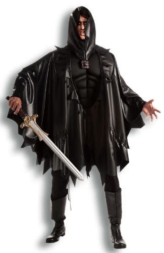 Rob the rich and party down in this Deluxe Adult Highway Man Costume.  This costume features a muscle chest with attached cape.  Back of top is held with velcro.  Costume also includes a hood and rubber painted medallion.  Standard fits up to a size 44 inch chest.