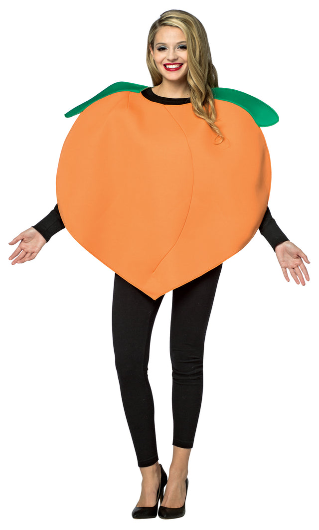 Do you love a big juicy peach like we do? This costume is a just the thing. Costume front is 100% polyurethane foam and resembles a peach emoji. Costume is a sleeveless pullover tunic with foam front and fabric back. Pair it with a eggplant or cucumber costume for a naughty, yet silly couples costume. One size fits most.