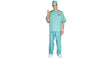 Calling Dr. FeelGood!  Be the cure the party needs when you show up wearing these fun surgeon scrubs!  This kit will let  you portray Dr.  Steamy or Dr. Dreamy.  Set includes a green surgical top and pants.  Costume includes a surgical cap.  Pair it with a nurses costume for a cute couples costume.  Add a stethoscope and faux butchers knife, sold separately.  Will fit most people up to a size 42 inch chest.