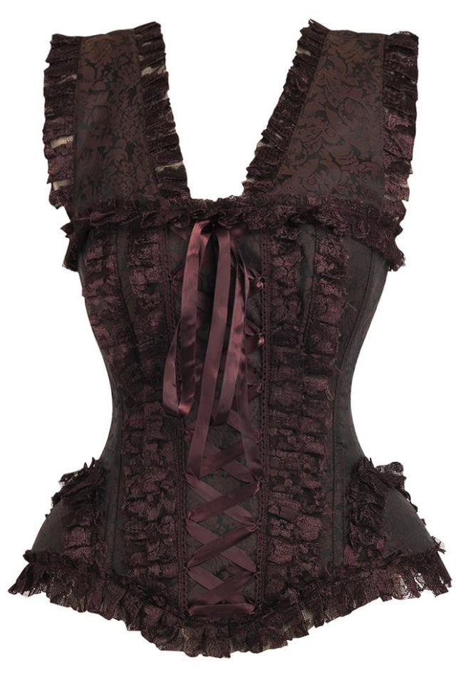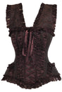 Top Drawer Brown Swirl Brocade & Lace Steel Boned Corset w/Cap Sleeves - XXL is backordered and will ship as soon as it is back in stock.