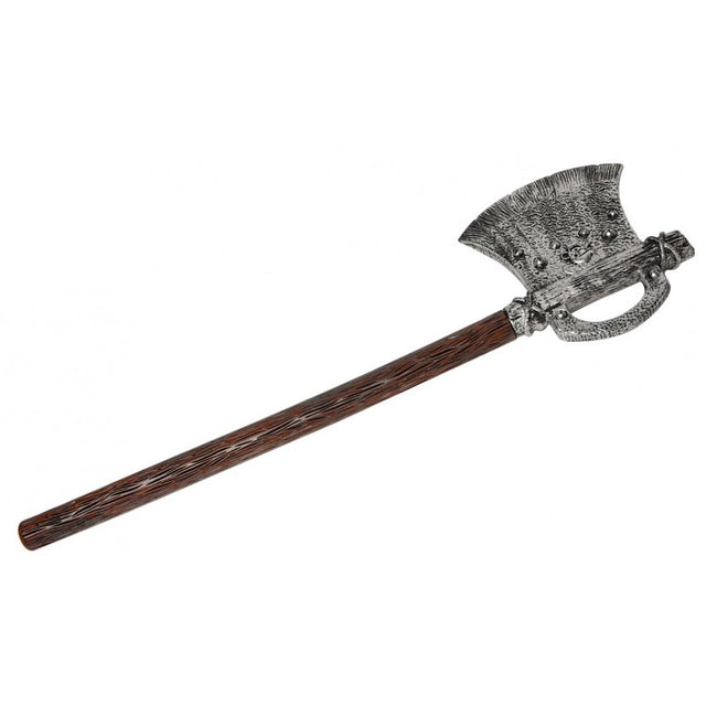 If you have treasure to steal or just protect, you need a weapon to help you!  This Pirate Tomahawk has a highly detailed axe head and spike.  Center of axe has a pirate skull and crossed swords.  Made from a sturdy molded plastic, the axe head and shaft are a tarnished silver.  The grip is painted a bright gold.  Axe is 20 inches in length and the axe head is 9 1/2 inches wide.  Perfect for pirates, warriors and barbarians.  Pair it with a pirate shirt and hat, sold separately.