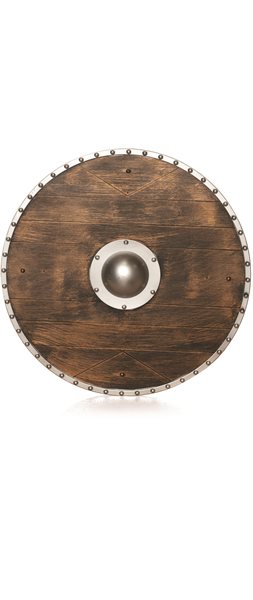 It is the warrior life for us!  We have a helmet, battle axe and this awesome faux wood shield.  Add to your barbarian cosplay with this amazing faux wood plastic shield.  Shield is 15 3/4 inches across.  Shield resembles brown wood and has a silver studded plastic rim and a silver plastic boss.  The shield has a plastic hand strap across the back.  While not meant to be used for protection against metal weapons, it makes a great LARP shield or an accessory for a costume or cosplay.
