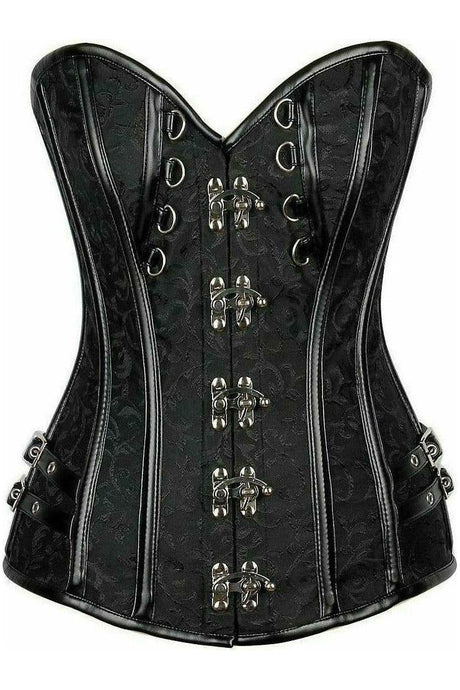 Top Drawer Black Brocade & Faux Leather Steel Boned Corset