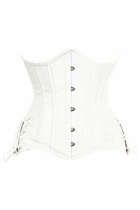 Top Drawer White Satin Double Steel Boned Curvy Cut Waist Cincher Corset w/Lace-Up Sides