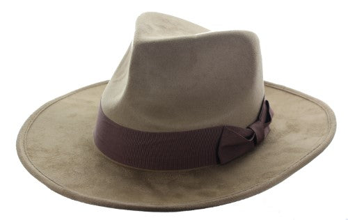 Next time you are exploring the deep jungle or trudging across the inhospitable desert in search of priceless treasures, you need a great hat to protect your head. This brown faux suede fedora is an excellent hat for your next adventure. This beauty stands 4.5 inches tall and will fit 22-24 inch circumference. Hat has an adjustable inner hat sizer. Works great for a famous archeologist named after a dog... or a private detective. Beat it up and wear it for Freddy Kreuger. Pair it with a bull whip and faux knife (sold separately).