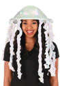 Float through the party like the beautiful iridescent creature you are with this stunning hat. This beauty is made from a shimmering holographic fabric. The base of this hat is a foam disk that is covered in shiny fabric. Hat is decorated with shiny tentacles that dangle from the edge of the hat. Hat has a hook and loop size adjuster on the inside, for a terrific fit. The broadcloth lining has a hidden pocket so you can stash some cash and ID. One size fits most adults and teens.