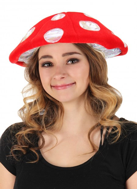 Shhh, be very quiet, there is FUNGUS among us! Light up fungus, which makes it so much better! This amazing hat resembles a red mushroom with white spots. Except on this mushroom, the spots light up and glow! Hat is foam backed velour and has a velcro size adjuster on the inside. The battery pack is hidden inside the hats lining. Requires 2 AAA batteries and includes demo batteries. The lights show through the vinyl circles on the hat. One size fits most adults and teens. Great for a forest creature, Super Mario costume or just when you are feeling a little toxic....