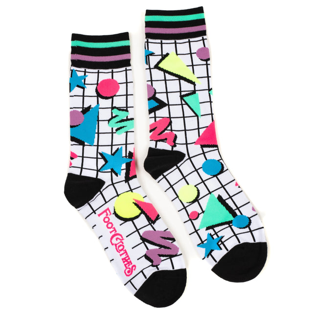 Our rendition of the awesome Memphis style Totally Tubular! 80s bed sheets many of us had as kids. Sheets for your feets! RAD! Socks fit shoe size 6-13 but may be snug on wider calves! Combed Cotton/Nylon/Spandex for breathability, durability, and stretch. DOUBLE TERRY in the heel and toe area adds durability and comfort where most novelty sock brands fail.