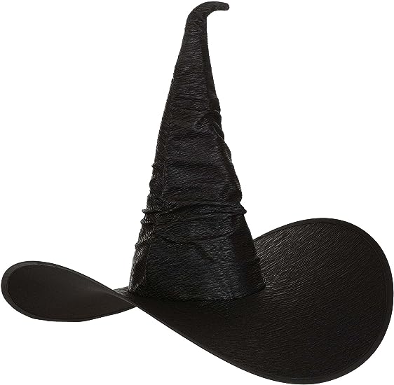 Stride into the coven with this hat on, they will all be talking about your big witch energy! This beauty is as big as your witchy powers. This lovely features a large brim and a tall crown. Hat features shimmery crinkle fabric that gleams silverish in the light. The brim is 8 inches wide and the pointy crown is 19 inches high. Witch hat adds drama to your witch costume. Hat has a memory wire in the brim so it maintains its shape. The pointy crown curls at the top. One size fits most adults and teens.