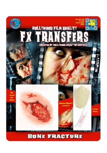 Oh my goodness! Your poor arm! That looks so painful! This amazing, hyper-realistic prosthetic is perfect for freaking out friends, neighbors and loved ones. No clue how to use all that special fx makeup at the local store? No need to hire a professional or spend tons of money on lots of different waxes, bloods and latex. Tinsley Transfers apply with water! No messy glues, adhesives or latex needed! All you need is scissors, water and a towel or sponge. Applies just like a fake tattoo. Add stage blood for a hyper realistic look. 3D FX transfers can make anyone a makeup artist! Washes off with soap and water or a makeup remover. Wonderful for people with latex allergies, no latex is used in making this item. Transfers come in a large selection of wounds, facial features and more.