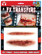 Want to look scary and gory for Halloween?  Are you the victim in a Murder Mystery?  No clue how to use all that special fx makeup at the local store?  This set includes 2 wounds, one thin and one wide.  Wounds are each 4 1/2 inches long.  No need to hire a professional or spend tons of money on lots of different waxes, bloods and latex.  Tinsley Transfers apply with water!  No messy glues, adhesives or latex needed!  All you need is scissors, water and a towel or sponge.  Applies just like a fake tattoo.  Add stage blood for a hyper realistic look.  3D FX transfers can make anyone a makeup artist!  Washes off with soap and water or a makeup remover.  Wonderful for people with latex allergies, no latex is used in making this item.  Transfers come in a large selection of wounds, facial features and more.