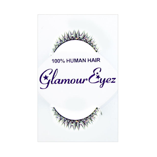 If you like sparkly eyes, how about sparkly eyelashes? These gorgeous lashes have beautiful spiky lashes with glitter along the edge. A wonderful choice for a costume look or a night out dancing! Trim for a great fit.