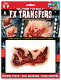 Want to look scary and gory for Halloween? Are you the victim in a Murder Mystery? No clue how to use all that special fx makeup at the local store? This appliance will make you like someone (or something...) has torn a large chunk of your flesh off. Appliance is a large 4 1/2 inch x 2 1/2 inch piece. No need to hire a professional or spend tons of money on lots of different waxes, bloods and latex. Tinsley Transfers apply with water! No messy glues, adhesives or latex needed! All you need is scissors, water and a towel or sponge. Applies just like a fake tattoo. Add stage blood for a hyper realistic look. 3D FX transfers can make anyone a makeup artist! Washes off with soap and water or a makeup remover. Wonderful for people with latex allergies, no latex is used in making this item. Transfers come in a large selection of wounds, facial features and more.