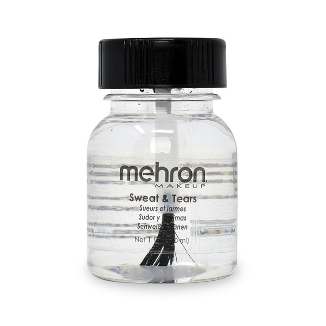 Need your actor or model to look like they are beaded with sweat? Crying their eyes out? Try Mehron Sweat and Tears. Apply with a brush or sponge using a patting or stippling motion to leave “beads of sweat”. More applications will leave bigger beads. This product will not dry, so it’s good for creating a sweaty look for a long period of time. A drop may be applied to the corner of an eye to create a tear. Remove with soap and water.