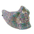 Skeletons don't have to be boring black and white. These half skull mask are beautiful and sparkly. Mask features the lower half of a skull and are covered in brillaint rhinestones. Mask has an elastic strap that holds the mask in place. This lightweight plastic mask is padded at the nose for comfort. Mask has nasal holes to help you breathe. One size fits most. Perfect for Halloween, fancy dress parties, festivals, raves, parties and more. Choose from iridescent AB and Black rhinestones.