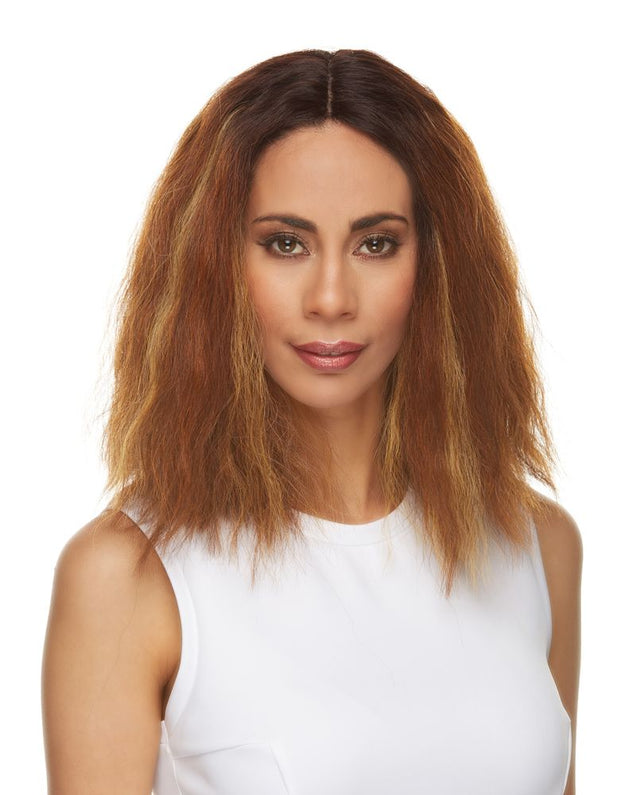 Who says a lace front wig has to be a normal, boring color? Not us! We love a fun colored lace front! This shoulder length wig is textured and wavy. Wig features a center lace part and is heat friendly. Wig has a off black top and soft pink or grey on the other half. Wig has an average cap size and will fit most teens and adults. Wig has adjustable straps for a terrific fit.