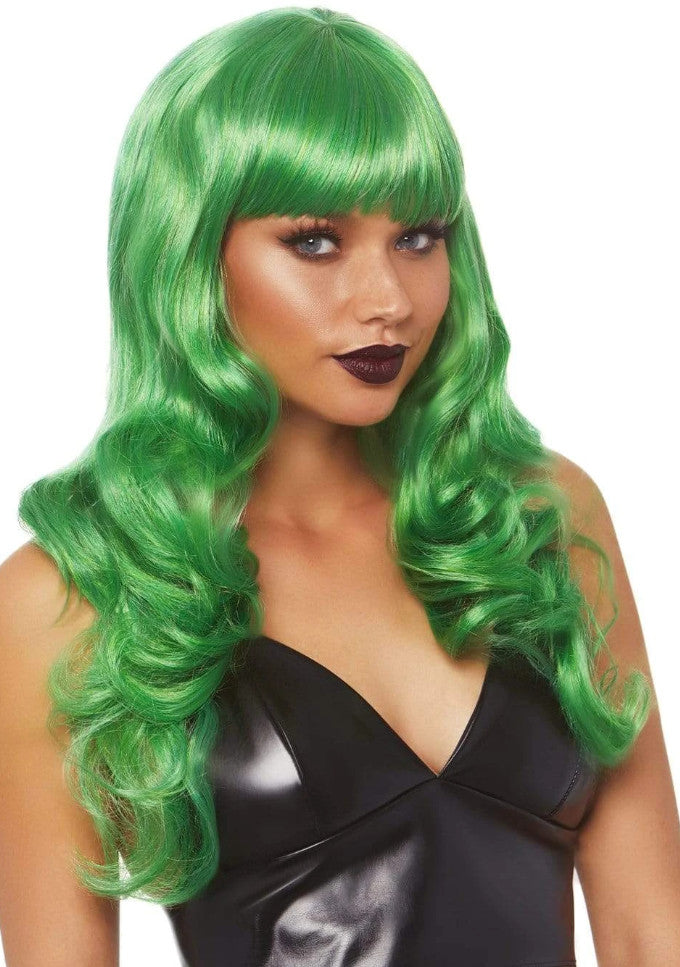 This 24" long wavy wig takes the vivid hair color trend and makes it achievable. With the gorgeous blended tones, natural silky feel and remarkable shine, you'll have a look that beautifully frames your face and looks amazing on! This stunning rich green synthetic wig features high quality fibers and an adjustable wig cap for the perfect fit. Add this curly wig to complete a look or a sexy Halloween costume, festival outfit, or fun night out. Makes a great Poison Ivy, Mermaid or fairy wig. Not heat safe. One size fits most adults and teens.