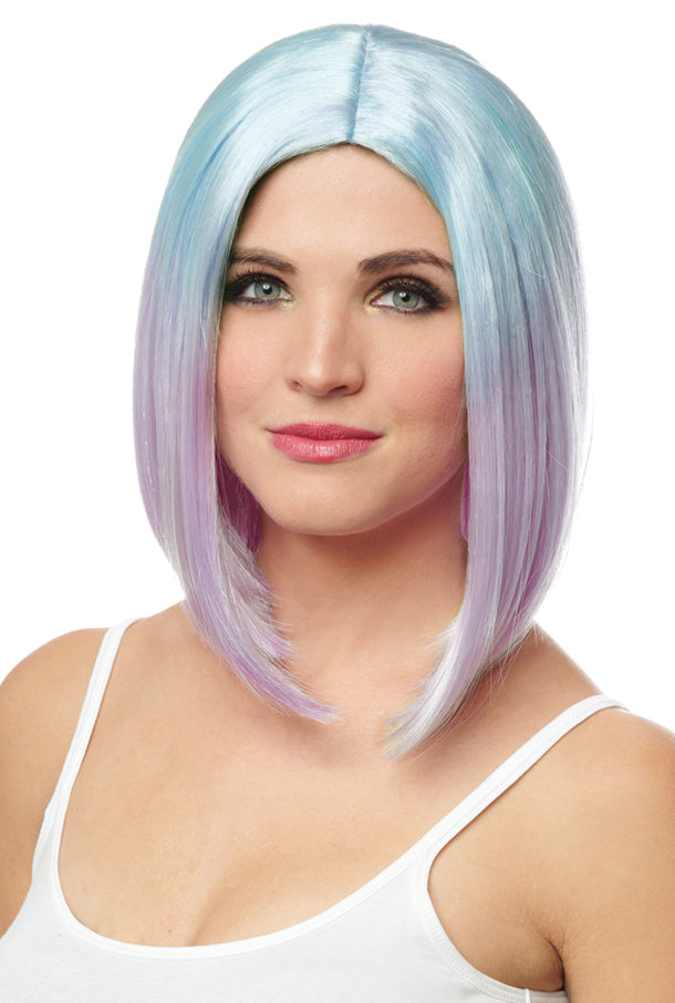 We all know that changing your hair color can be a long painful journey. If you are dark haired, you may need to bleach, deep condition and bleach again before you can achieve the color you want. Why go through all that trouble when you can just pop on a wig? This wig is a great example skipping the expense and fried hair to get a unique color. This shoulder length wig is straight with just the lightest curl on the end. Wig starts out as a light blue and goes to a lavender on the ends. Wig glimmers in the light for an iridescent appearance. One size fits most adults and teens. Wig is not heat friendly and has elastic on the sides for a snug fit.