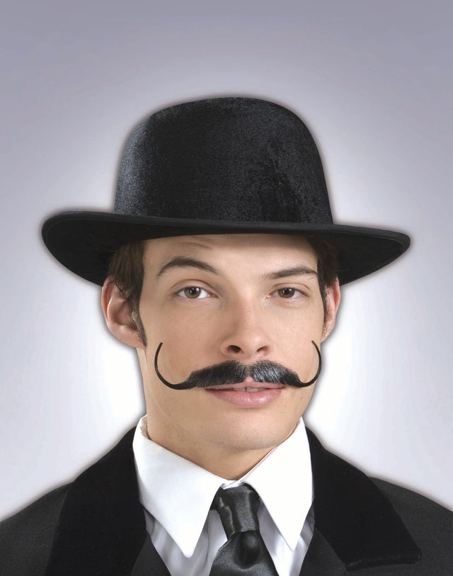 We have always admired a villain who had a thin, twirlable mustache. Imagine the joy of twisting your mustache as your helpless victim is tied to the train tracks. Wish no more. This awesome mustache is reminiscent of Saturday morning cartoon villain, Snidely Whiplash! Whether you want to be an aspiring villain or a Victorian gentleman, this is your mustache. Made from 100% human hair, this mustache is made on light beige lace. Mustache comes with 2 strips of skin safe toupee tape, so you can wear it again. Purchase Spirit Gum and remover so you can wear it multiple times. Pair it with a top hat and black robe for a wonderful villain look or bowler and cane for a gentleman. Mustache is a natural black. One size fits most.