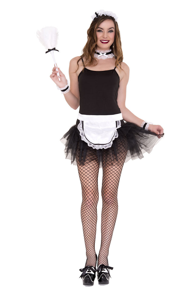 Dusting, sweeping, scrubbing, and polishing... does it really make sense to do all that cleaning in such a nice dress? Lose the frills but keep the thrills with this sultry French Maid Accessory Kit! With all the essential components of this classic sexy costume, complete with a feather duster, you can DIY your own sexy uniform as you see fit! Perfect for Halloween, dance performances, or just for turning down the bed! Kit includes lace headpiece, choker, feather duster, lace wrist cuffs and apron. Dress and stockings not included.