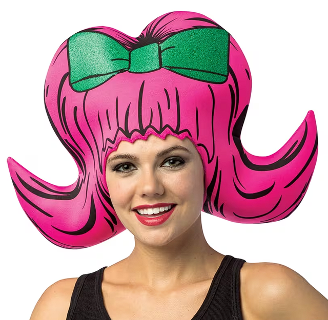Step into the spotlight with this hilarious oversized bouffant creation that'll have everyone laughing. This retro-inspired foam headpiece channels groovy 60's vibes with its bold hot pink hue and gravity-defying volume. Simply slip it over your head for instant transformation—no styling required. Perfect for costume parties, themed events, or whenever you need to bring the fun. Made from lightweight polyurethane foam, it's comfortable enough to wear all night while delivering maximum comedic impact.