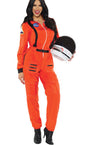 Blast off to fun with this awesome ladies astronaut costume! This one piece jumpsuit zips up the front. Jumpsuit has long sleeves and long pants. Legs have elastic around the bottom and and knit cuffs around the wrist. Right sleeve has a Space Shuttle patch, right breast has a NASA patch. Left arm has an American flag and left breast has a Commander patch. Suit has attached black straps on shoulders that extend to the waist and buckle shut. Suit has multiple zipper and snap closed functioning pockets. Pair it with the astronaut helmet, sold separately. Choose from orange or white. Small fits size 6-8, Large fits size14-16 and XLarge fits size 18-20.