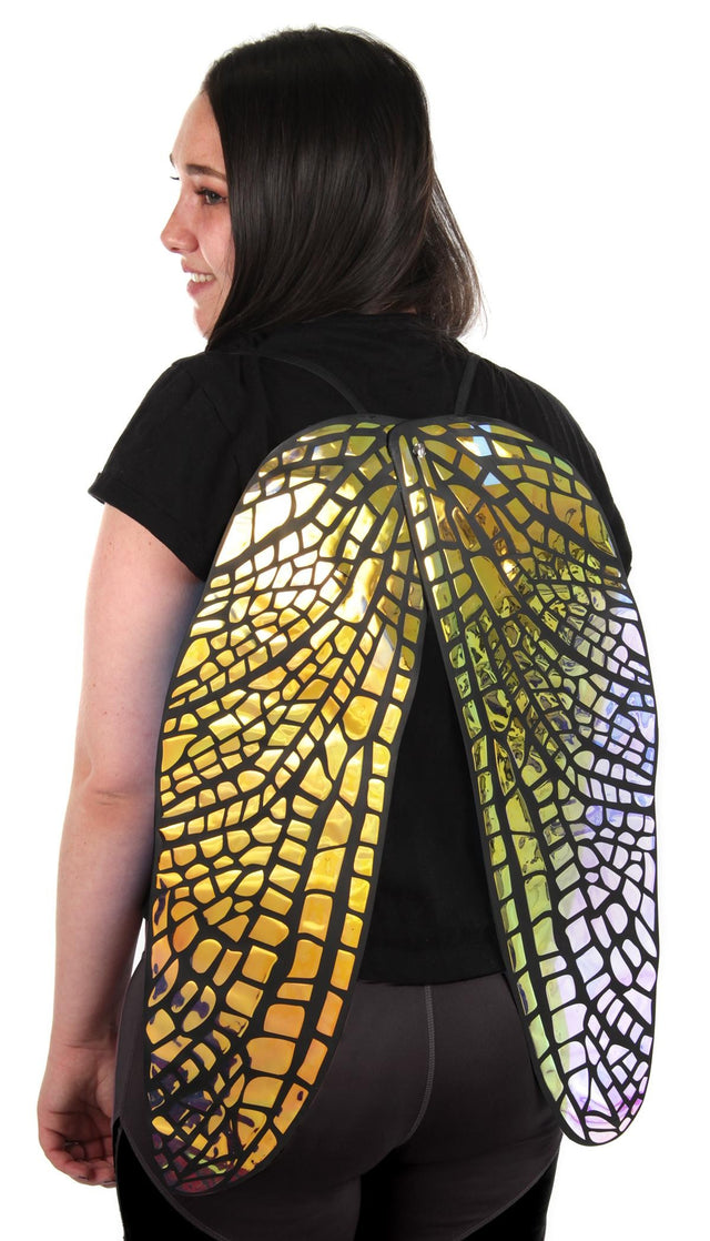 What kind of fairy do you want to be? Regardless of type, you need a beautiful set of wings. These large holographic wings are an excellent addition to any fairy costume. Wings are made from a holographic plastic with black veins. Wings have adjustable elastic straps for a secure fit. Wings appear to change color in the light. A terrific addition to any costume wardrobe. Each wing is 23 inches long and 7 1/2 inches wide.
