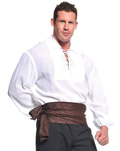Need to be a pirate and a renaissance lord the next? Then you need this shirt. This quality costume shirt has full sleeves, lace up chest and a nice collar. Sleeves have a velcro closure. This shirt can be used for many costumes and events. From Pirate Day to your local renaissance faire. Great for theatrical performances. Very well made. Standard size fits up to a 42-46 inch chest.
