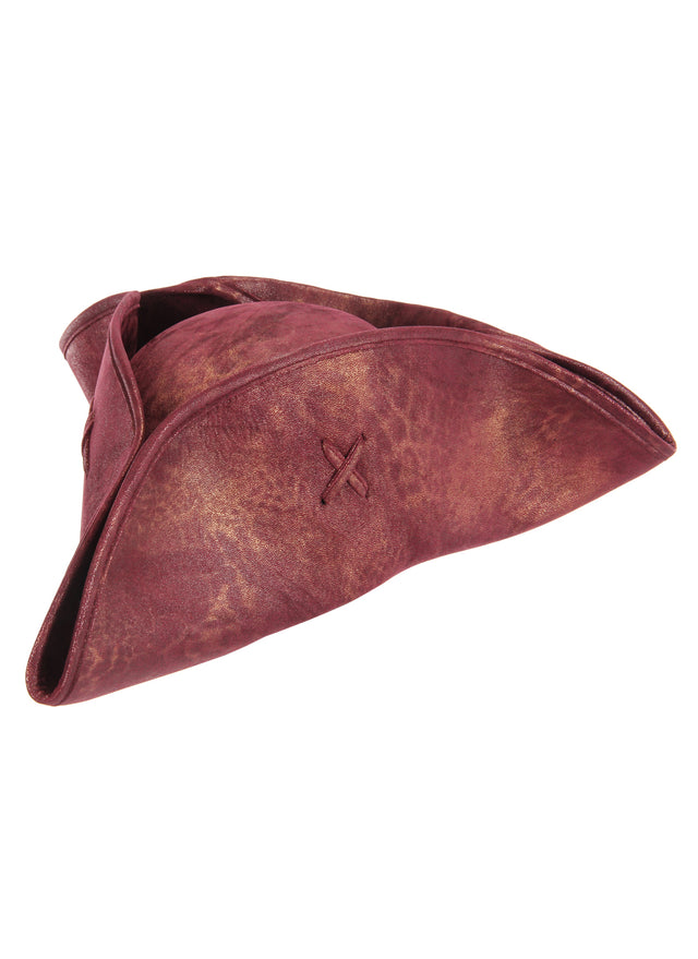 Even rowdy pirates need super nice hats and baby, these are extra nice! This hat is made from a nice faux suede with an EVA core. Hat is the famous tricorn shape and has a bendable brim that all scurvy seadogs want! This hat has a deep blood red faux leather finish and scurvy hand-stitch detailing are sure to strike fear or jealousy in your crew. Hat will fit all manner of pirates and privateers with the aid of the internal size adjuster. This hat makes a great addition to your whimsical wardrobe or novelty dress-up collection. Prepare to pillage and plunder your nearest costume party or convention. Will fit most adults and teens.