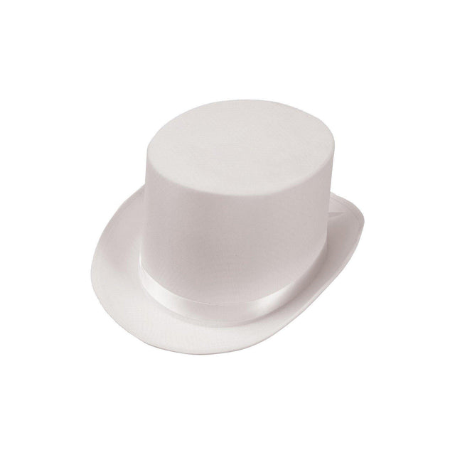 Dance recital looming and you don't have the top hat you need?  Need a great, fun top hat for a costume or cosplay that won't break the bank?  This lovely white top hat is a great deal.  This all white top hat has a curved brim and a white satin hat band.  Hat will fit most adults and teens.